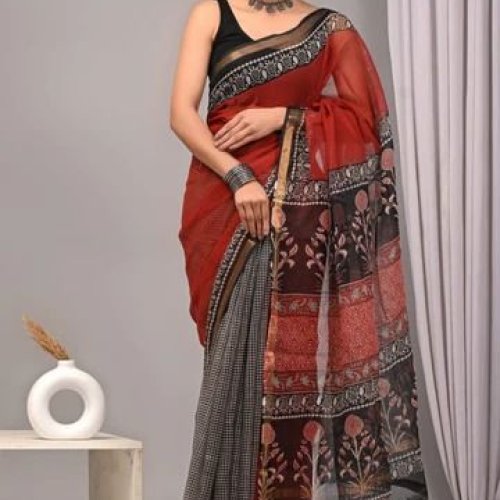 Hand Print Kota Doria Saree