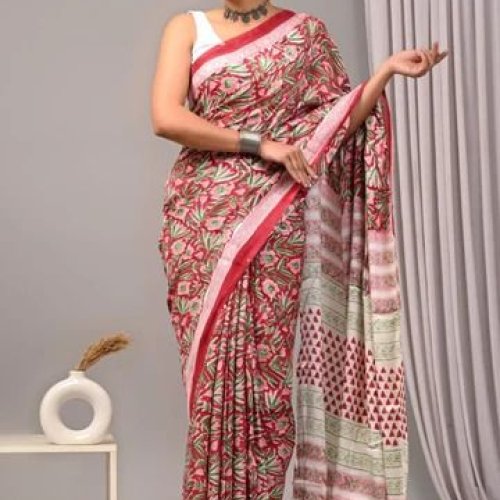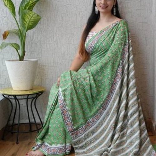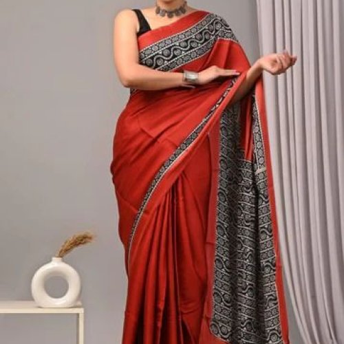Natural Dye Ajrakh Vanspati Printed Silk Saree