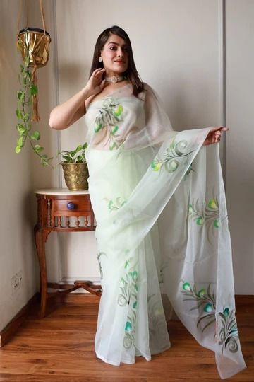 Home › Products › Exclusive Hand Print Sarees › Hand Painted Organza Silk Saree
