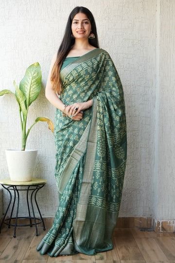 Home › Products › Exclusive Hand Print Sarees › Pure Chanderi Silk Saree With Geecha Border